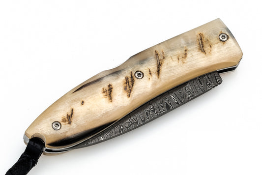 LIONSTEEL | Opera Folding Damascus | Ram Horn | 8800D MN