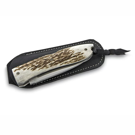 LionSteel 8810 CE Big Opera Folding 3.54" Satin D2 Tool Steel Blade, Genuine Stag Handles, Lockback