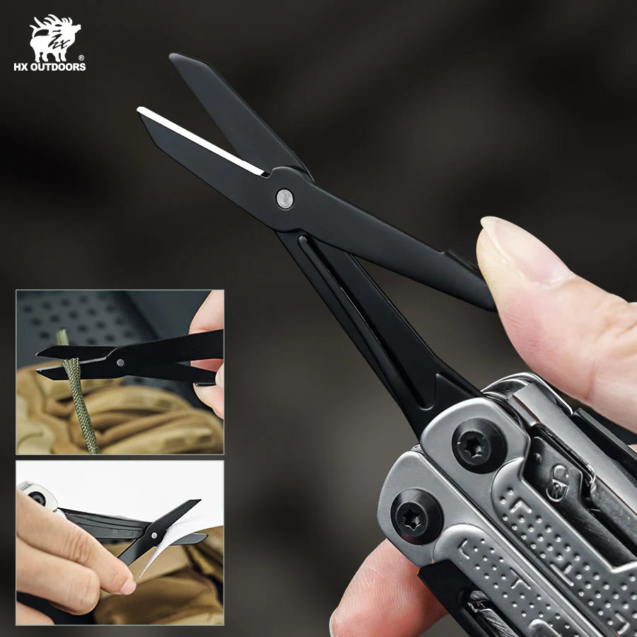 The HAWKX | 420 | SILVER | GQ-26 multi-tool offers a durable and versatile solution for all your daily needs. With a blade length of 68mm and a weight of only 313g, it includes a wide range of attachments such as pliers, wire cutters, saw, screwdrivers, and more. Made with high-quality 7Cr17 and 3Cr13 materials, this multi-tool is a must-have for any outdoor enthusiast or handyman.