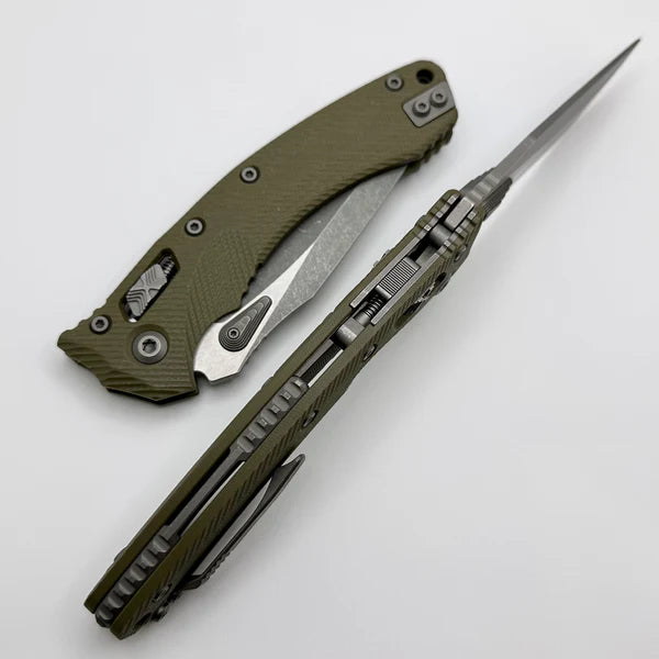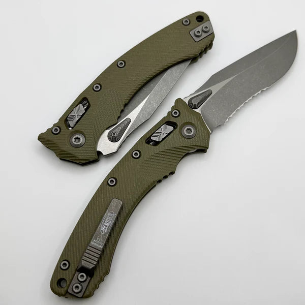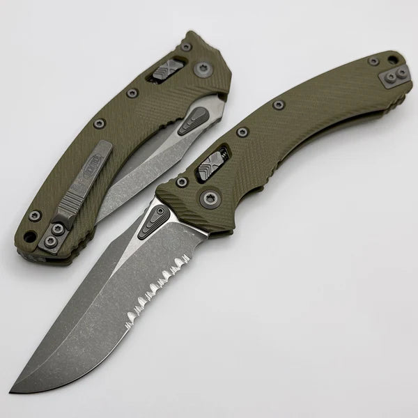 Microtech Amphibian RAM LOK OD Green Fluted G-10 & Partial Serrated Apocalyptic M390MK 137RL-11APFLGTOD