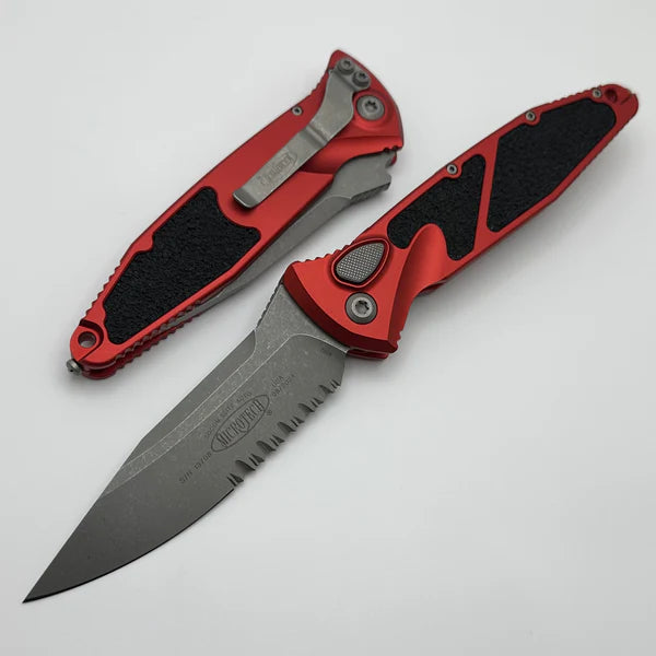 Microtech Socom Elite Auto Red Handles w/ Apocalyptic Single Edge Partial Serrated 160A-11APRD